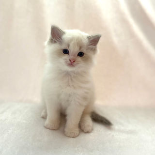 Primrose, the mama of this litter is a beautiful blue pointed and mitted Ragdoll. She has a very calm demeanor. She loves playing with dogs and being held like a baby.